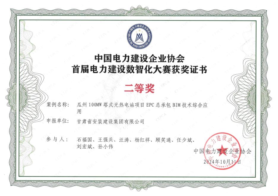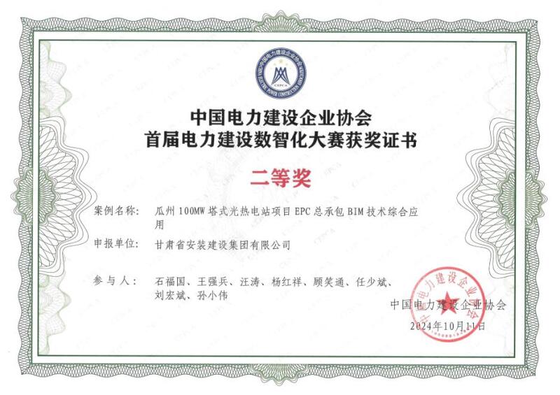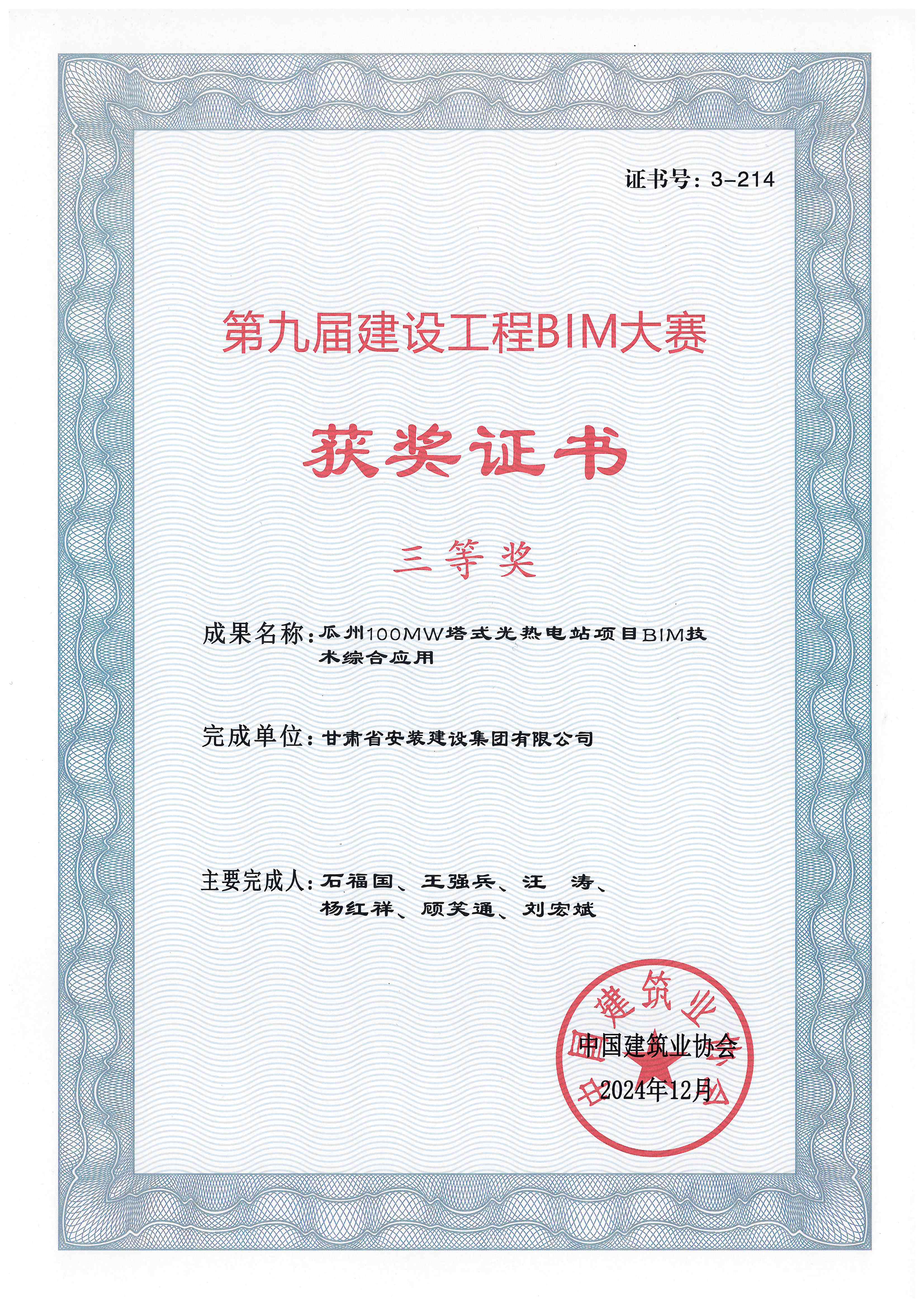 作品名称:瓜州100MW塔式光热电站项目BIM技术综合应用 | |
