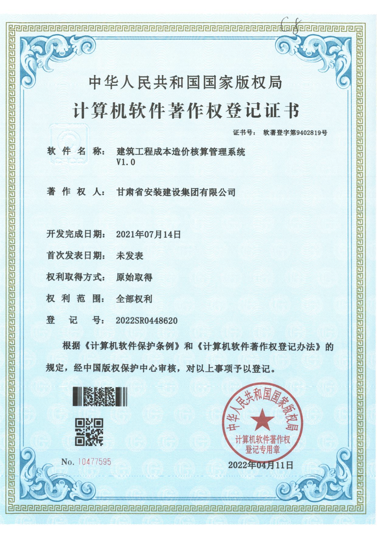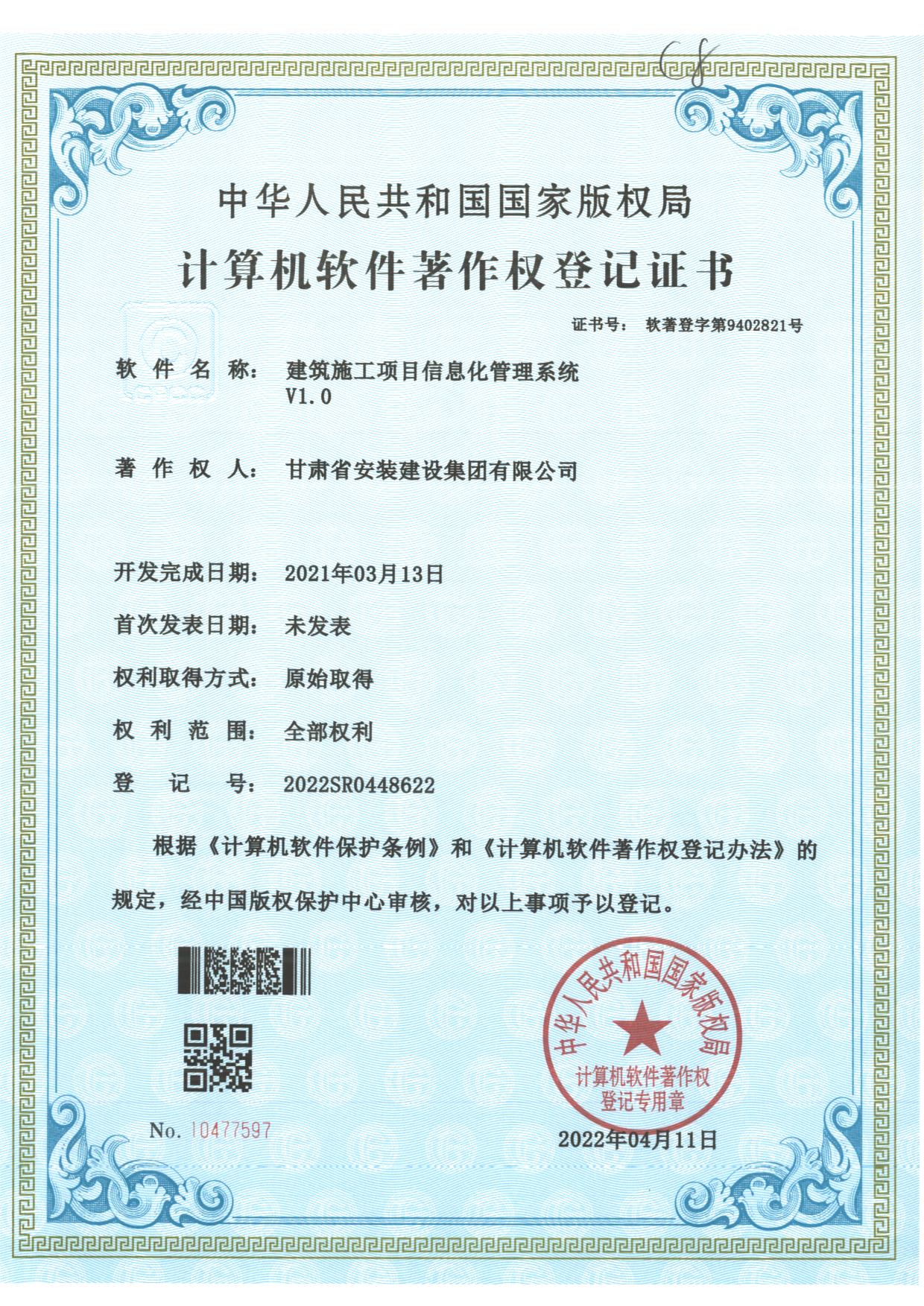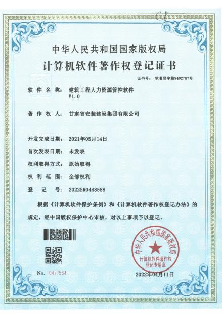 著作权人:甘肃省安装建设集团有限公司 | ||