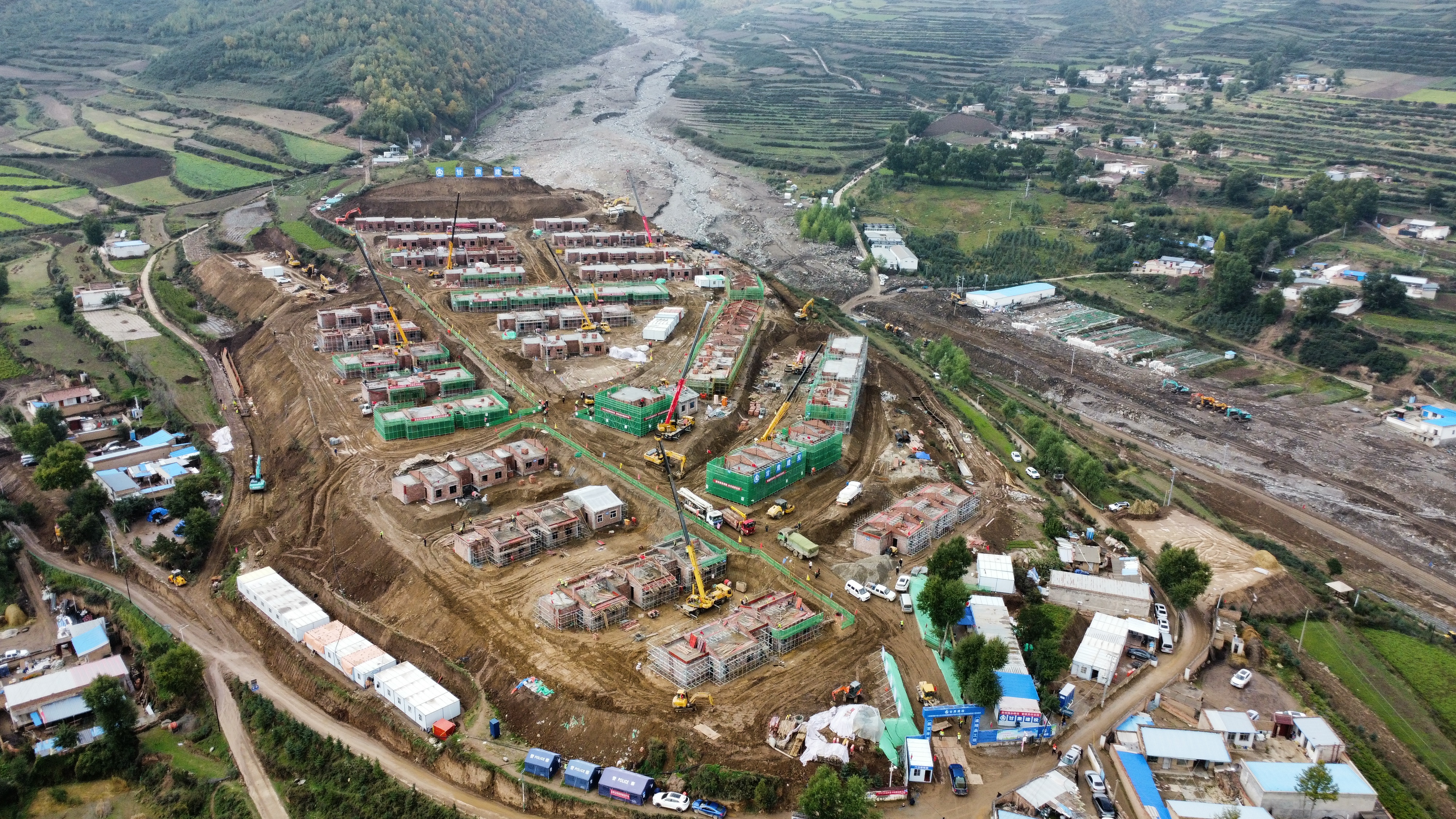 10月1日,随着最后一方混凝土精准浇筑完成,旧庄沟村83户安置房全部封顶,至此,甘肃建投承建的三个灾后恢复重建集中安置点,171户安置房实现主体结构全面封顶。