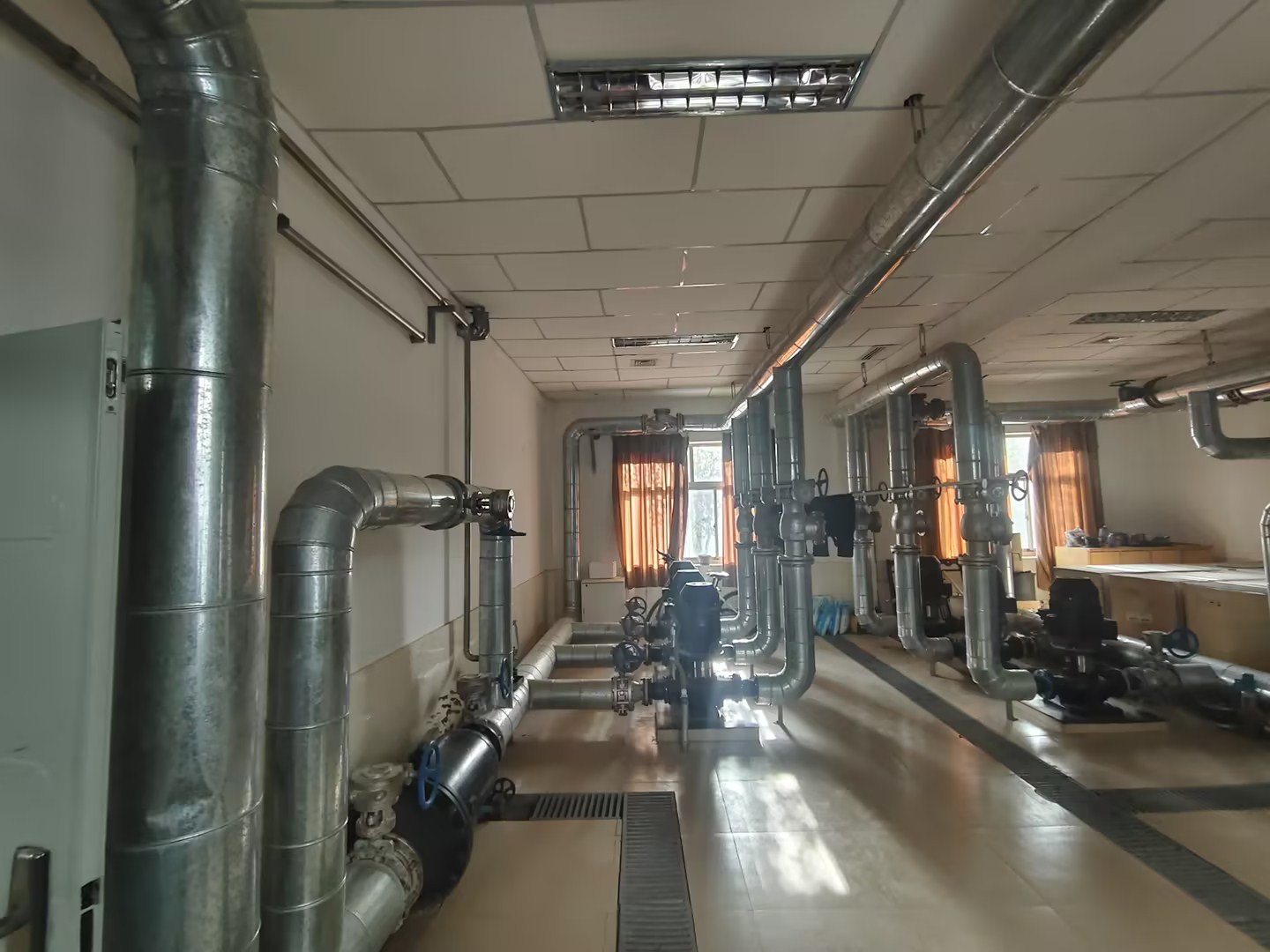 据悉,该项目主要建设内容涵盖泵房老设备更新、空调系统更新迭代、热泵机房照明与弱电系统改造、门窗翻新升级、屋面防水,室内装饰装修等关键环节。项目完成后,将为敦煌研究院日常运营及职工的办公生活等注入强劲的绿色动能。截至目前,室内吊顶及风机盘管拆除工作已全面展开,室内供回水管道焊接、室外聚氨酯保温管焊接等关键工序同步推进,施工形象进度为15%。