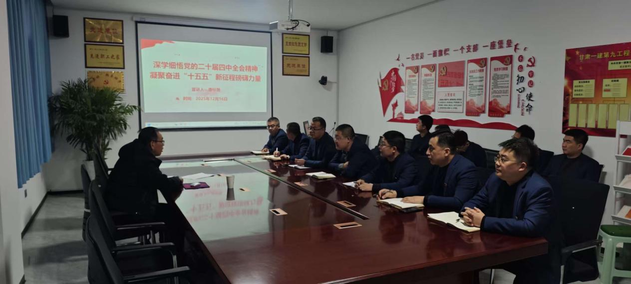 2025年12月16日,公司党委副书记、工会主席唐标尧深入第九工程公司党支部,围绕“深学细悟党的二十届四中全会精神,凝聚奋进‘十五五’新征程磅礴力量”主题,开展专题宣讲。第九工程公司全体党员、团员青年代表及部分职工群众参加学习。