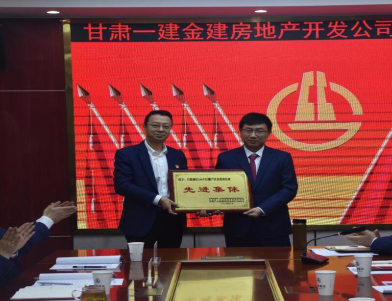 副总经理谢国权代表一建公司授予白银104项目“2024年度先进集体”荣誉,项目执行负责人尚伦杰代表白银104项目领奖。
