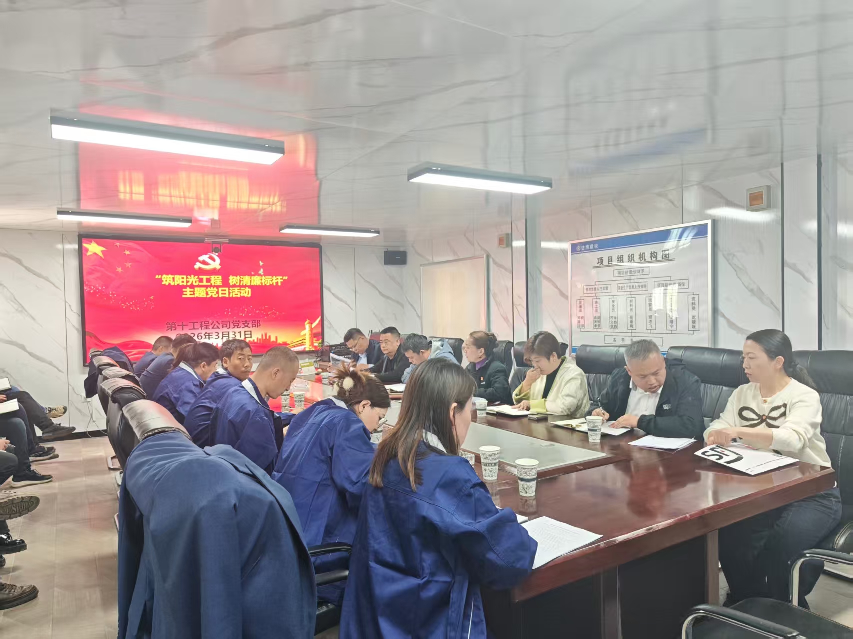 为深入推进全面从严治党,进一步强化党员干部廉洁自律意识,筑牢拒腐防变思想防线,切实做好廉洁风险防控工作,2026年3月31日下午,第十工程公司党支部在北京八中高中部项目部会议室组织开展“筑阳光工程 树清廉标杆”主题党日活动。工程公司领导班子成员,在兰全体党员、各部室负责人及项目部全体管理人员参加活动。